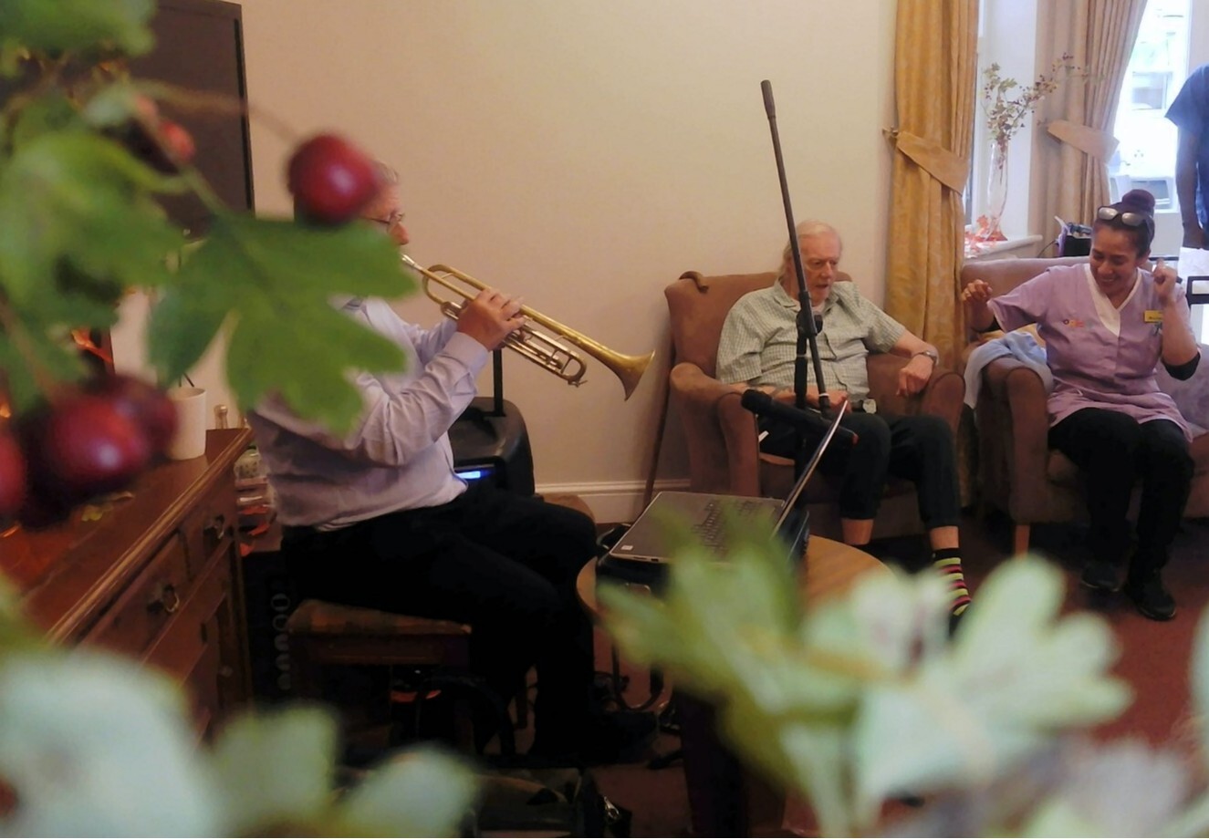 The Hollies celebrated Harvest Afternoon with residents, families, and staff enjoying live music, seasonal food, and autumn-themed decorations. Guests were treated to spiced hot drinks and a delicious meal featuring pumpkin soup, tender lamb stew, and classic apple crumble, perfect for a crisp autumn day. A highlight of the afternoon was a live trumpet performance by Kevin, whose music had everyone dancing, clapping, and tapping along.