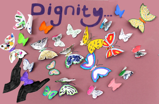 The team and people we support marked Dignity Action Day with a "Digni-FREE" display.